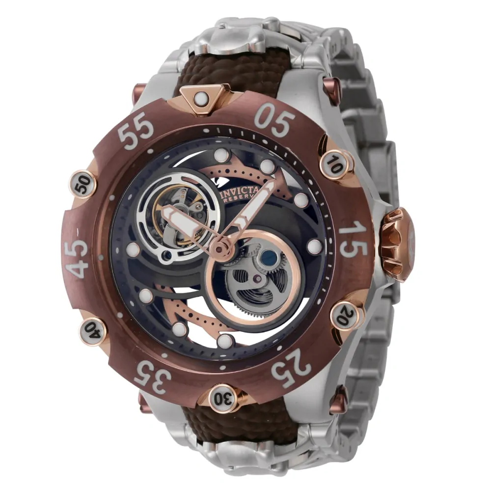Tyto krásné hodinky Invicta Reserve obsahují kromě ocelového, hnědého, růžového zlatého pouzdra i přesný automatický strojek. Jeho obličej zobrazuje , skeletový, kovový číselník chráněný vysoce odolným krystalem Flame Fusion Crystal. Tyto hodinky jsou doplněny hnědým, ocelovým, silikonovým, nerezovým páskem a nabízejí voděodolnost až 200 m.Výjimečná chuť a výrazná paleta tohoto znalce objeví v kolekci Invicta Reserve nadčasové potěšení. Speciálně vyvinutý pro znalé, Reserve je přerodem toho nejlepšího, aby vytvořil dokonalou hodinářskou parádu. Tyto hodinky představují vrchol v nadřazenosti pro náročné milovníky.