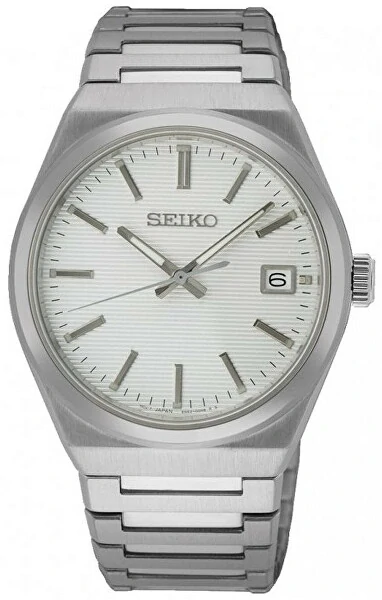Náramkové hodinky Seiko SUR553P1, patřící do modelové řady Quartz, nabízí nadčasový vzhled s lehkým retro nádechem 70. let, díky kterému jsou vhodným doplňkem prakticky pro všechny příležitosti. Díky svým vlastnostem se mohou stát ideálními hodinkami pro každodenní nošení.Na hodinkách na první pohled zaujme čistý a účelný design tvořený soudkovitým pouzdrem, v němž je usazen bílý strukturovaný číselník se stříbrnými ručkami a plastickými indexy na hodinových pozicích. Chráněn je safírovým sklíčkem. Pouzdro hodinek je vyrobeno z ušlechtilé oceli a vhodně doplněno ocelovým náramkem, skládajícím se z drobnějších dílků. Díky drobnějším dílkům jsou hodinky na zápěstí velmi pohodlné.