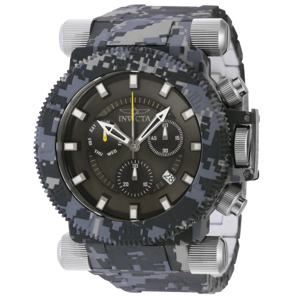 Tyto působivé hodinky Invicta Coalition Forces mají přesný strojek Quartz a ocelové pouzdro s povrchovou úpravou aqua-plating. Jeho šedý, černý, kovový ciferník je obklopen vysoce ochranným minerálním sklíčkem. Tyto hodinky jsou zakončeny pevnou ocelí, aqua pokovením, páskem z nerezové oceli a nabízejí vodotěsnost 100 m.Tajné operace jsou odhaleny, když do popředí vstoupí tajné koaliční síly Invicty. Koaliční síly jsou připraveny zvládnout i ty nejsofistikovanější úkoly a jsou připraveny na každodenní manévry, které přijdou. Posíleny atributy skutečného vůdcovství, koaliční síly dosáhnou přední linie s řadou taktik a promění čas v mnohostrannou vizi.Od svého založení v La Chaux-de-Fonds ve Švýcarsku v roce 1837 byl závazek k dokonalosti a inovaci jádrem každé kolekce vytvořené společností Invicta.