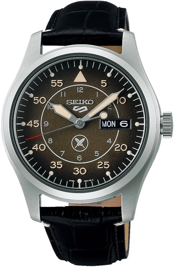 Pro hodinky s číselníkem v leteckém stylu a s klasickým designem kolekce Seiko 5 Sports Field byl speciálně navržený číselník, který nad 6. hodinou nese logo z jestřábích per, vycházející z rodového znaku Horigome. Logo zdobí také průhledné dýnko, pro něž bylo použité kouřové sklíčko. Gradientní číselník v hnědých tónech má výrazné číslice a ručky s krémovou luminiscencí LumiBrite, dodávající hodinkám lehký vintage nádech.